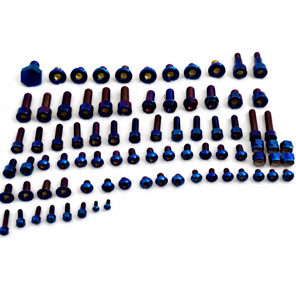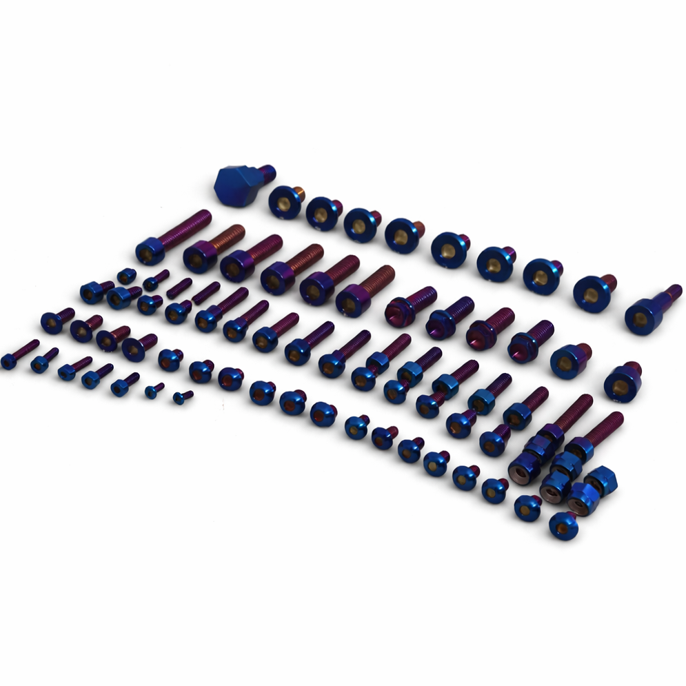 Upgrade your Tuttio Soleil 01 with our full visible titanium bolt kit, designed to replace the stock visible hardware with a premium anodized burnt blue finish. This complete kit includes the visible bolts across the bike for a cleaner, more custom look while delivering the benefits of titanium: lighter weight, excellent corrosion resistance, and a high strength-to-weight ratio.